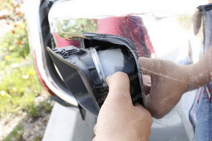 Step 2: Pull the plastic cover towards you to expose the OEM bulbs.