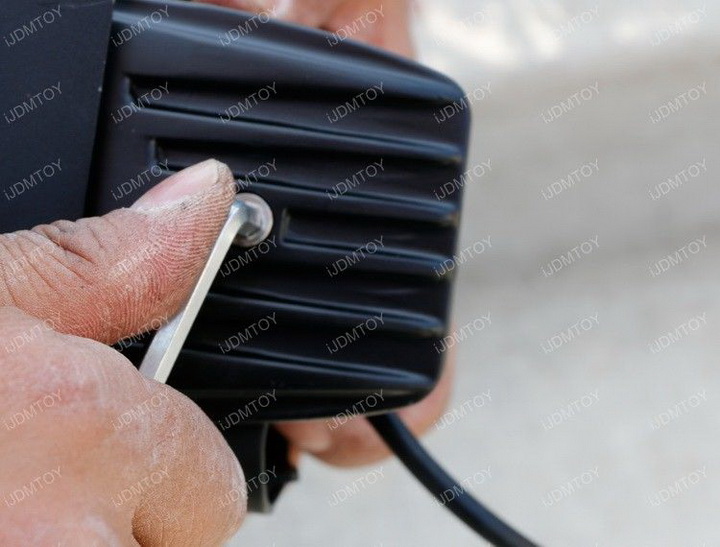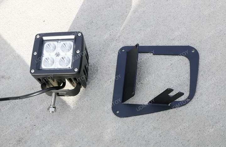 Step 4: You'll need to assemble the LED fog light brackets. Insert the top mounting bracket into the fog lights and bolt both ends together. Then put the bolt and washer into the top opening of the bracket so you can mount the LED pod light onto your truck later. Below is a video demonstration to show you how to mount the bracket onto your LED fog light.