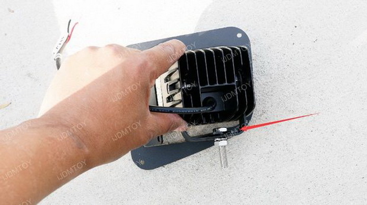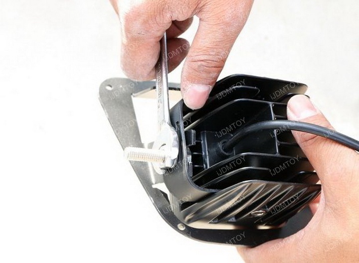Step 5: Make sure that the bolt sticks out of the LED fog light and is attached to the plate so the bolt will go in between the metal holder.