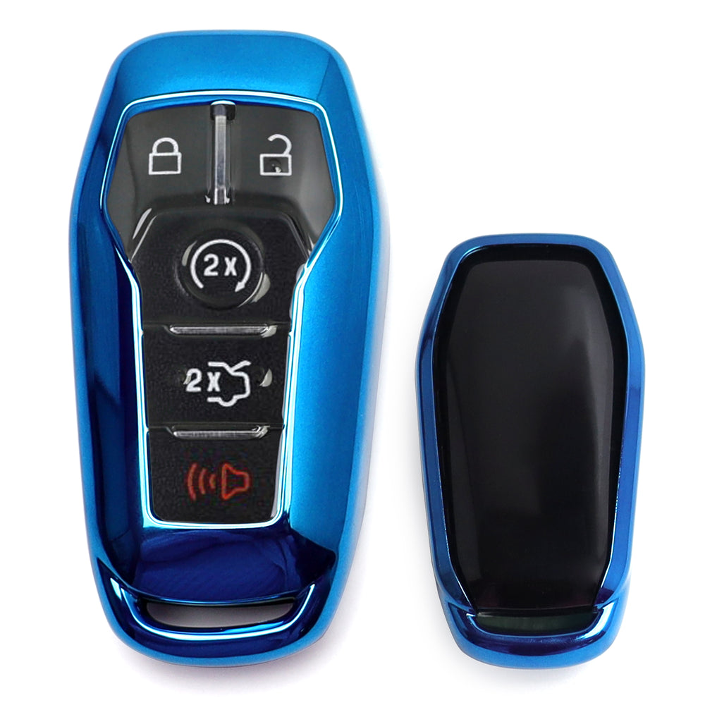 Chrome Blue TPU Key Fob Case For Ford or Lincoln 4/5-Button Intelligent Keyless