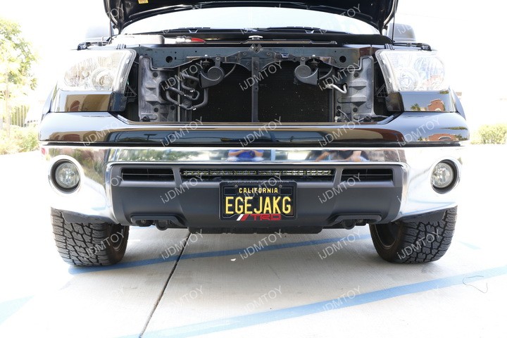 The 2007-2013 Toyota Tundra is a very popular choice for truck drivers due to its reliability and affordable price tag. Some truck drivers like to outfit their trucks with additional lighting, but there aren't many options available for this particular Tundra due to the small gap in the lower bumper that makes it kind of difficult to accommodate many LED light bars. iJDMTOY has designed a special single row LED light bar that is able to fit into this small space as well as custom brackets to mount the LED light bar. This 2007-2013 Toyota Tundra LED light bar is the first ever on the market and will definitely catch the fancy of plenty of Tundra owners.