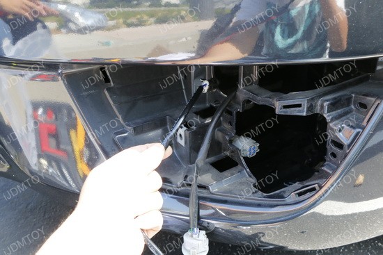 Step 8: Put the new fog light cover in place. You will have to use this specific fog lamp assembly included because it's specially designed to accommodate the sizing difference between USDM stock turn signal lamp vs these JDM switchback LED daytime running light/turn signal lamp otherwise there would be a gap in between this LED daytime running lamp and the stock fog lamp cover or bezel cover.