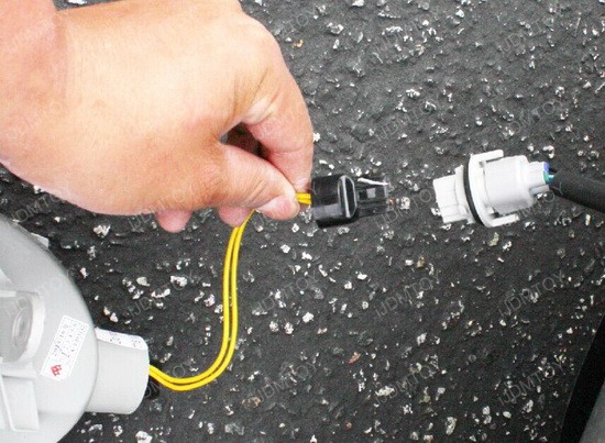 Step 4: Remove the stock 7443NA turn signal light bulb from the stock harness, connect the 7440 adapter from the LED daytime running lamp back there, then connect the module box to the LED daytime running lamp as well.