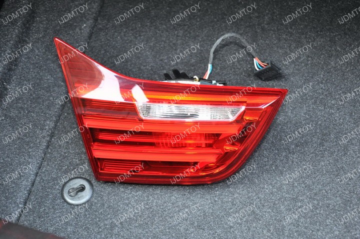 Step 4: Plug in the LED reverse light bulb. You may notice that there is a groove on one end of the LED bulb. This ensures that the LED reverse light bulb can only be plugged in one way, so if you cannot plug in the LED bulb, you can flip it around so the grooves will attach accordingly. Make sure everything lights up and put the housing back in place. Reconnect the stock harness and put the trunk liner back.